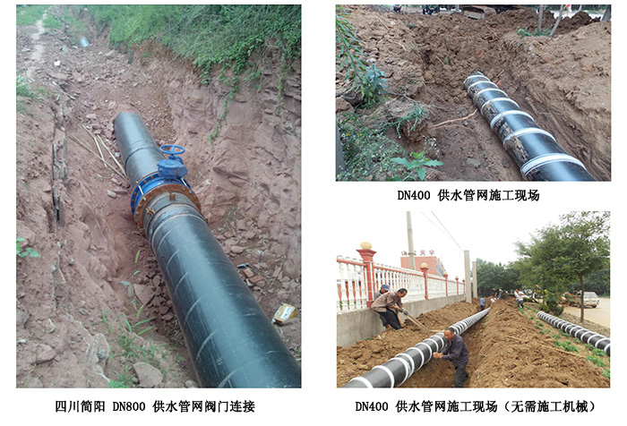 在工程施工方面,大口径必一体育平台_必一体育(中国)一站式服务平台管也占很大优势。钢丝缠绕超高必一体育平台_必一体育(中国)一站式服务平台管的比重约为1.2,而由于其壁厚很薄,直径可以小一号,其重量比铸铁管和PCCP管小5—10倍,搬运和安装非常轻便。超高必一体育平台_必一体育(中国)一站式服务平台复合管的柔韧性很好,可以先在地面上连接好之后再下到管沟里,边挖沟边下管,边填埋。不用修路,不用大型机械,不用地基处理。铸铁管和PCCP管必须挖很宽的沟,管道下到沟里对正连接,受到很大局限,工程费用大幅上涨。在需要穿越江河的情况,超高分子量聚乙烯必一体育平台_必一体育(中国)一站式服务平台管可用沉入法在江河底敷设,也可用拖拉法从江底隧道或管道中拖曳而过,这都是铸铁管和PCCP管做不到的。