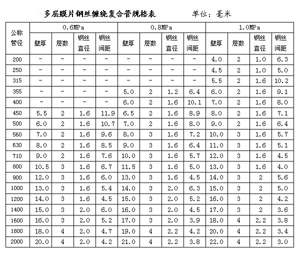 超高钢丝网骨架聚乙烯多层必一体育平台_必一体育(中国)一站式服务平台复合管规格表 (单位:毫米)